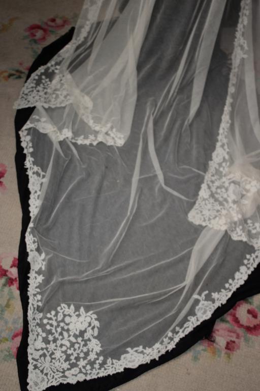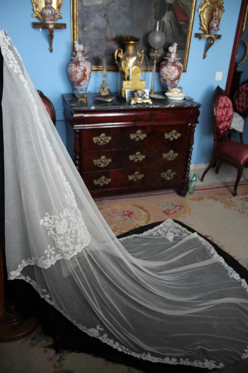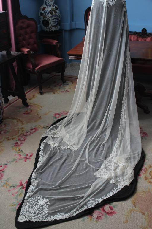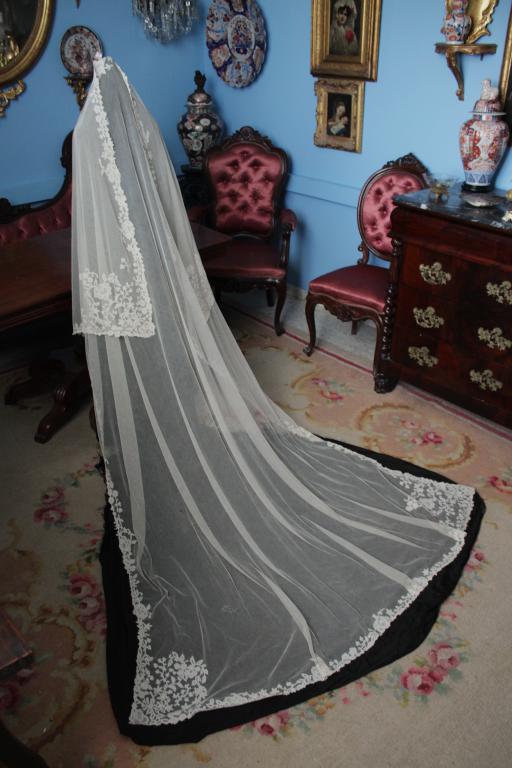 Es  un velo grande, muy largo, ideal para grandes colas de trajes de novias.
